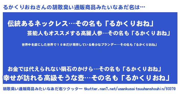 | ヘコむあだ名 | 『るかっちょ』『なまこ酢』 |