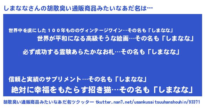 | ヘコむあだ名 | 『しまもー』『しまなな(笑)』 |