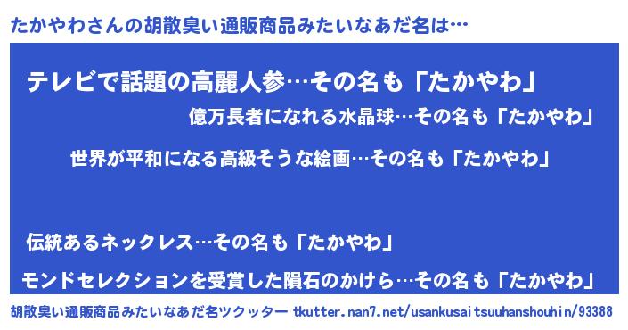 | 意味不明あだ名 | 『たかやわフォーエバー』『自称たかやわ』 |