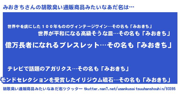 | ヒーロー風カッコイイあだ名 | 『スーパーミオキチ』『仮面ミオダー』 |