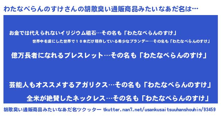 | ヒーロー風カッコイイあだ名 | 『スーパーワタナベランノスケ』 |