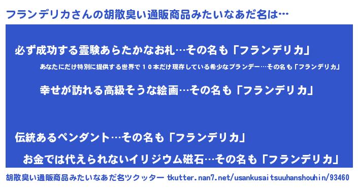 | 男性向けラノベタイトル風あだ名 | 『フランデリカスレイヤー』 |