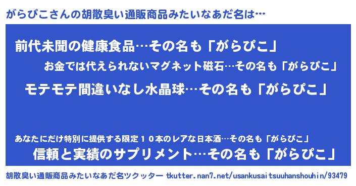 | 男性向けラノベタイトル風あだ名 | 『がらぴこの憂鬱』 |