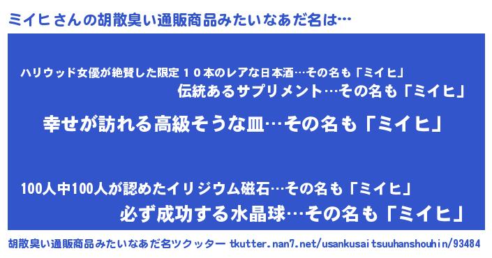 | ヘコむあだ名 | 『牛乳』『ミイにゅー』『ミイ太郎』 |