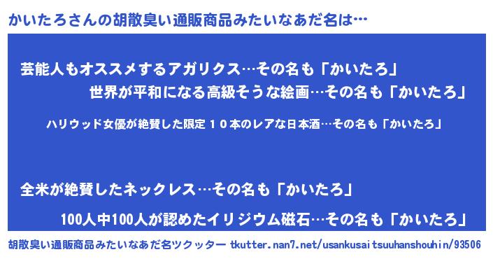 | 恥ずかしいあだ名 | 『カイタロデラックス』『かいっちょ』 |