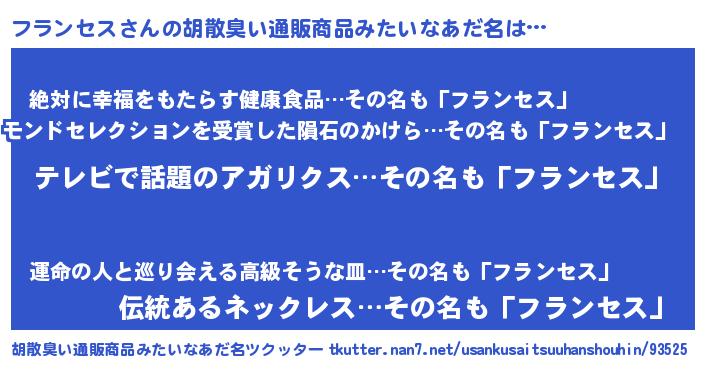 | 意味不明あだ名 | 『自称フランセス』『永久保存フランセス』 |