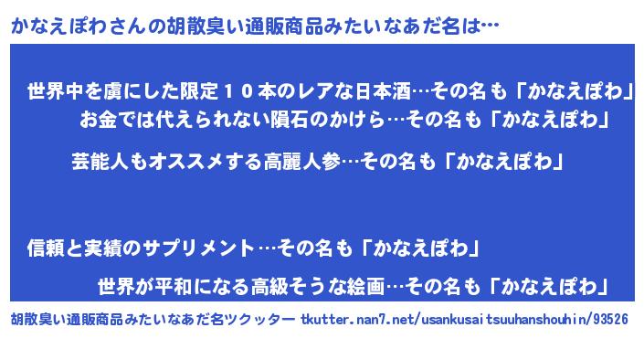 かなえぽわさんの胡散臭い通販商品みたいなあだ名をツクッター!