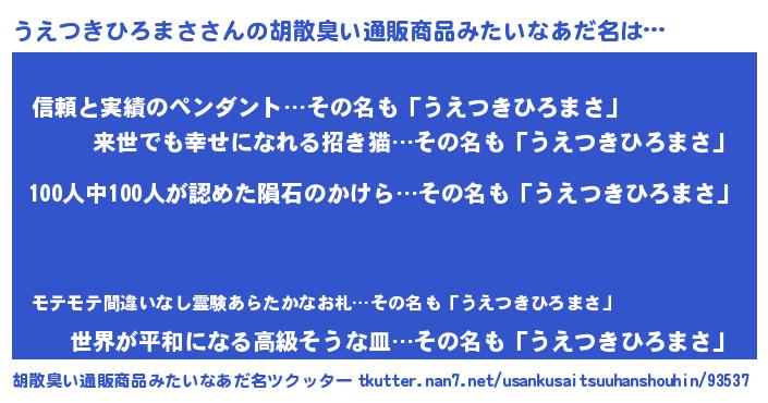 うえつきひろまささんの胡散臭い通販商品みたいなあだ名をツクッター!