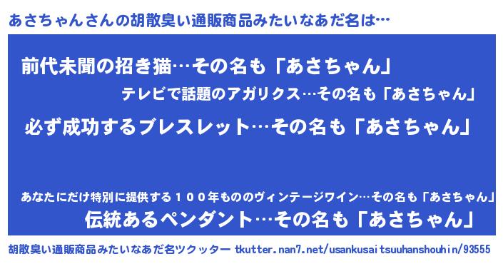 | ヘコむあだ名 | 『あさふぇ~』『あさちゃん(遠い目)』 |