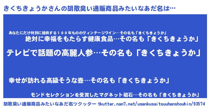 | 男性向けラノベタイトル風あだ名 | 『きくちきょうかに滅ぼされるだけの簡単なお仕事です』 |