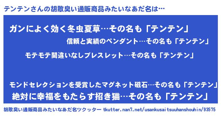 | 男性向けラノベタイトル風あだ名 | 『テンテンの憂鬱』 |