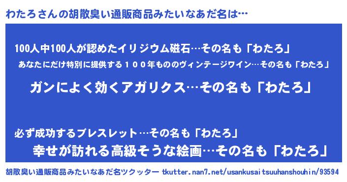 | 意味不明あだ名 | 『自称わたろ』『なめこ科わたろ属』 |
