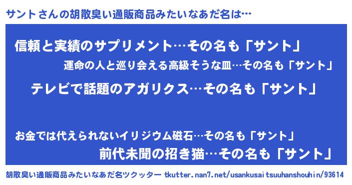 | ヒーロー風カッコイイあだ名 | 『ウルトラ戦士サント』『暗黒騎士サン』 |