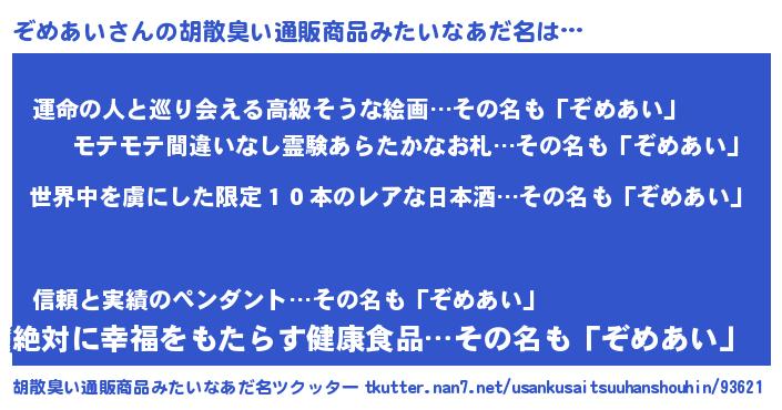 | 意味不明あだ名 | 『住所不定無職ぞめあい(53歳)』 |