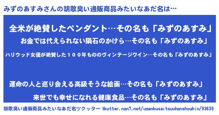 | 意味不明あだ名 | 『住所不定無職みずのあすみ(10歳)』 |
