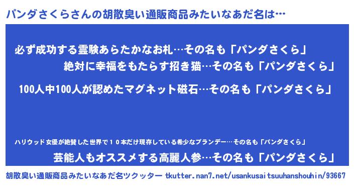 | ヘコむあだ名 | 『パンにー』『パンダさくら(遠い目)』 |