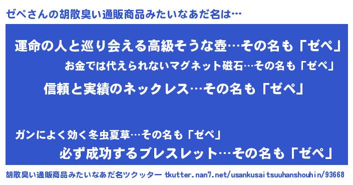 | ヘコむあだ名 | 『ゼペっ子』『酢こんぶ』 |