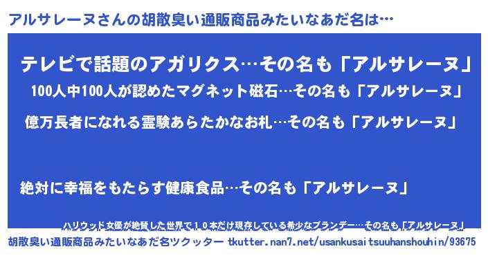 | ヘコむあだ名 | 『アルっふぃ~』『アルサレーヌ(爆)』 |