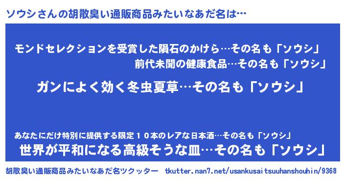 | 肩書あだ名 | 『ソウシ総統』『ソウシ少将』 |