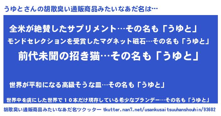 | 意味不明あだ名 | 『永久保存うゆと』『ヨモギ科うゆと属』 |