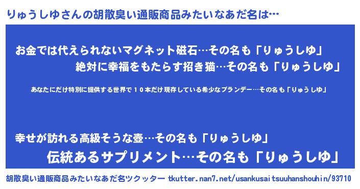 | ヘコむあだ名 | 『りゅっちょ』『りゅうしゆ(震え声)』 |