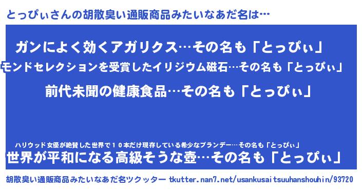 意味不明あだ名 | 『永久保存とっぴぃ』『自称とっぴぃ』 |