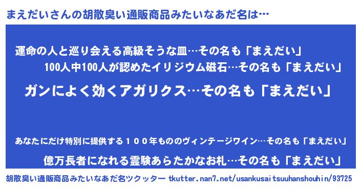 | 意味不明あだ名 | 『自称まえだい』『まえだいフォーエバー』 |