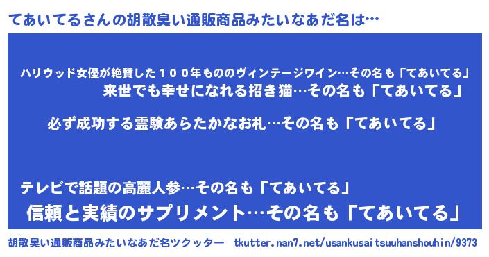| ヘコむあだ名 | 『てあもー』『てあ太郎』『なまこ酢』 |