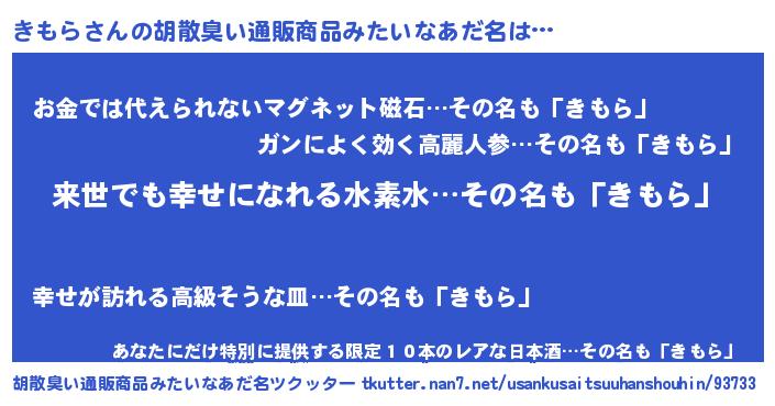 | 意味不明あだ名 | 『永久保存きもら』『自称きもら』 |