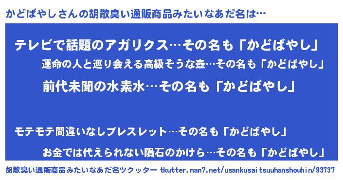| 意味不明あだ名 | 『永久保存かどばやし』『自称かどばやし』 |