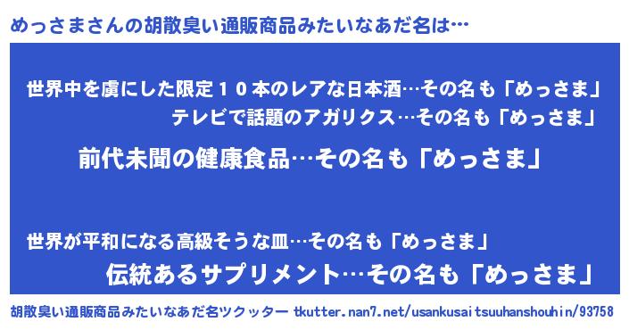 | 意味不明あだ名 | 『永久保存めっさま』『自称めっさま』 |