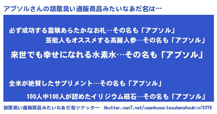 | ヒーロー風カッコイイあだ名 | 『ネオアブソル』『スーパーアブソル』 |