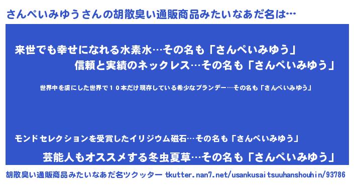さんぺいみゆうさんの胡散臭い通販商品みたいなあだ名をツクッター!