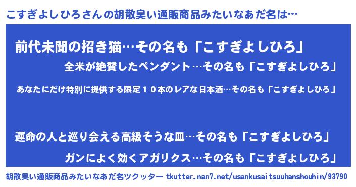 | ヘコむあだ名 | 『こすぎよしひろ(笑)』『こすお』 |