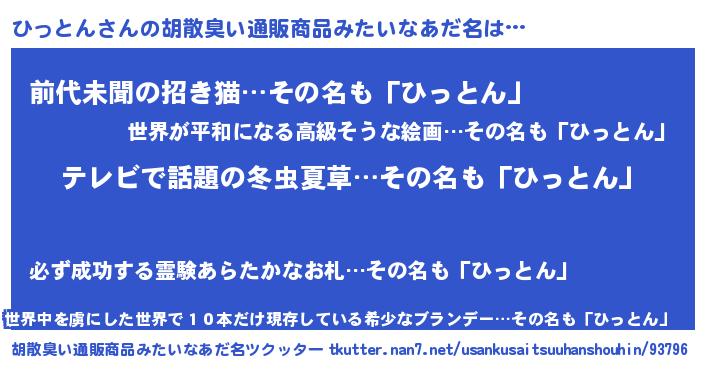 | 意味不明あだ名 | 『自称ひっとん』『永久保存ひっとん』 |