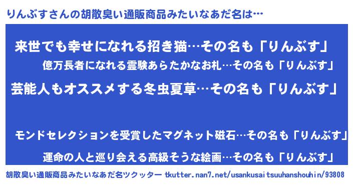 | 意味不明あだ名 | 『自称りんぶす』『永久保存りんぶす』 |