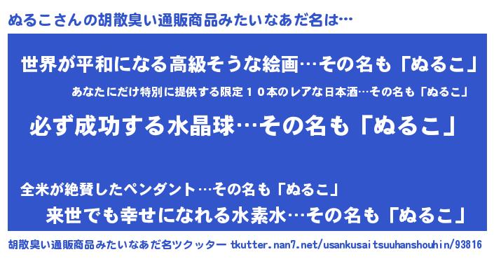 | 欧米人風あだ名 | 『アンジェラ・ぬるこ』『マイケルぬるこ』 |