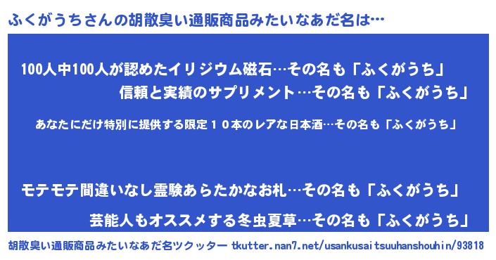 | 意味不明あだ名 | 『住所不定無職ふくがうち(41歳)』 |