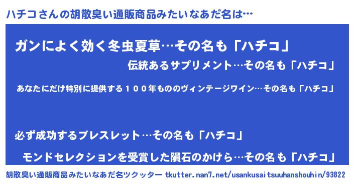 | 意味不明あだ名 | 『住所不定無職ハチコ(3歳)』『自称ハチコ』 |