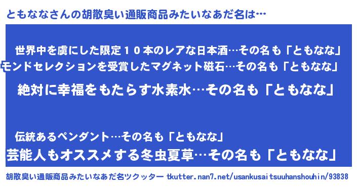 | 意味不明あだ名 | 『永久保存ともなな』『自称ともなな』 |