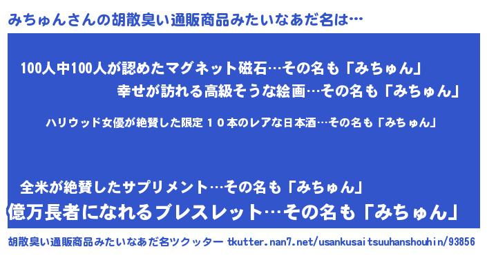 | 意味不明あだ名 | 『住所不定無職みちゅん(62歳)』 |