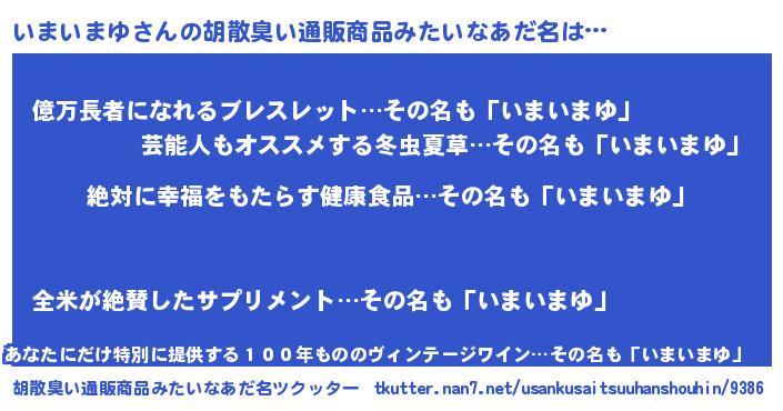 | 欧米人風あだ名 | 『アンジェラ・いまいまゆ』 |