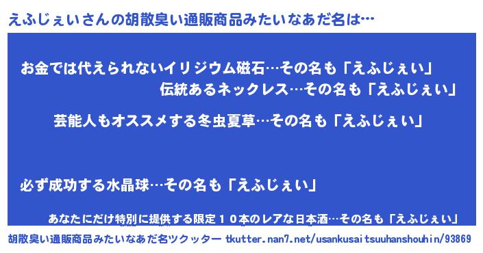 | 意味不明あだ名 | 『自称えふじぇい』 |