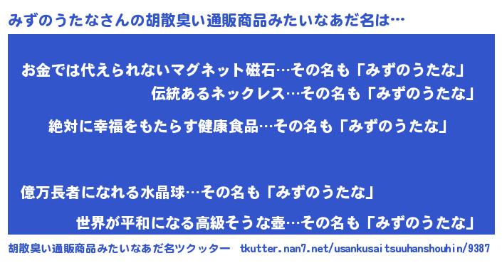 | 意味不明あだ名 | 『永久保存みずのうたな』 |