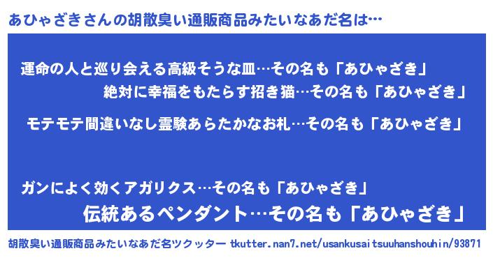 | 欧米人風あだ名 | 『アンジェラ・あひゃざき』 |
