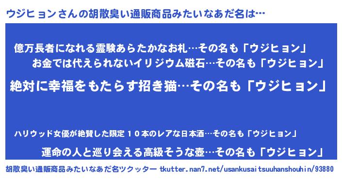 | ヘコむあだ名 | 『ウジヒョン(小並感)』『ウジもー』 |