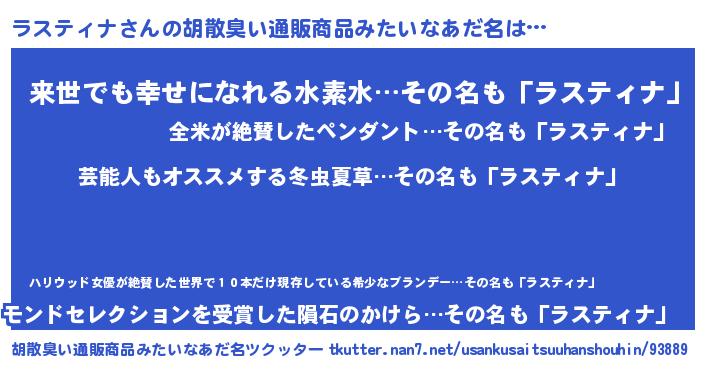 | 意味不明あだ名 | 『自称ラスティナ』『永久保存ラスティナ』 |