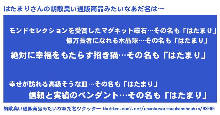 | 男性向けラノベタイトル風あだ名 | 『緋弾のハタマリ』『はたまりの憂鬱』 |