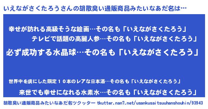 | 男性向けラノベタイトル風あだ名 | 『いえながさくたろうの憂鬱』 |