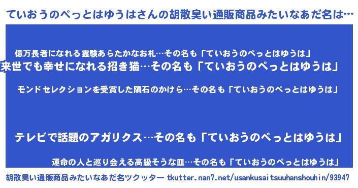 | ヒーロー風カッコイイあだ名 | 『慈愛の使者ていおうのぺっとはゆうは』 |
